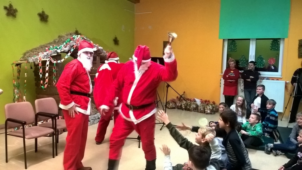 Punktem kulminacyjnym wieczoru Wigilijnego była wizyta aż trzech Gwiazdorów, którzy wręczyli dzieciom słodkie upominki oraz specjalnie przygotowane na tę okazję kubki. Dzieci opuściły Ośrodek z uśmiechem na ustach.